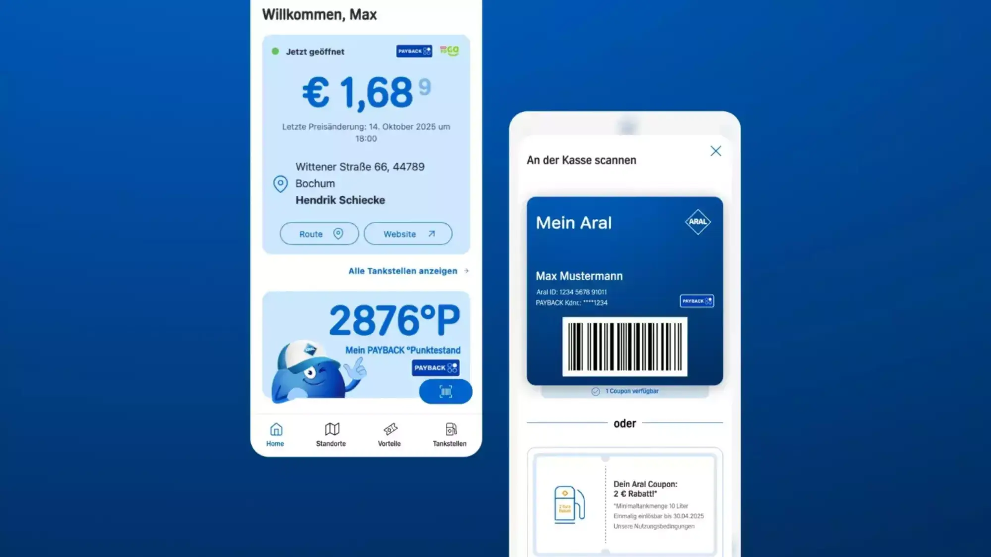 - mit der Mein Aral Karte Rabatt-Coupons einlösen und PAYBACK °Punkte sammeln